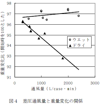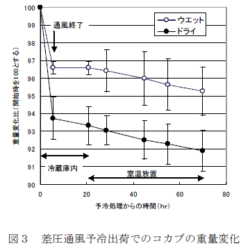コカブの差圧通風予冷における氷蓄熱高湿度冷蔵庫の優位性 | ||||||||
