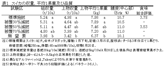 スイカトンネル栽培における被覆肥料を用いた窒素の大幅な減肥技術 |