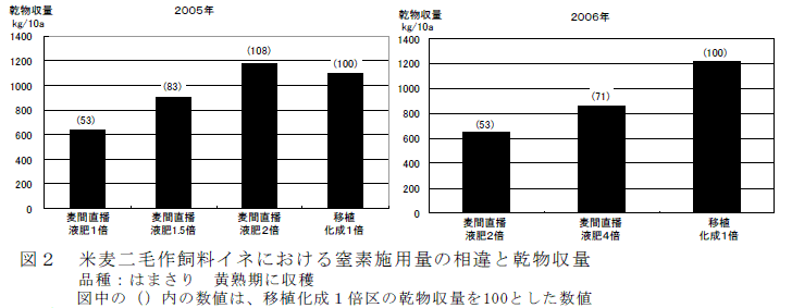 埼玉県の米麦二毛作体系において、飼料イネの麦間直播栽培は、耕畜連携における家畜由来液肥の窒素成分を増収目的で多用した場合でも、イチモンジセセリ(イネツトムシ)第2世代幼虫の発生を抑制できる。 | ||||