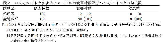 大型施設のハーブ類における複合交信撹乱剤の防除効果 | ||||||||||