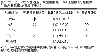 間接ELISA法を活用したOlpidium bornovanus に対する拮抗微生物簡易選抜法 | ||||||||