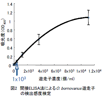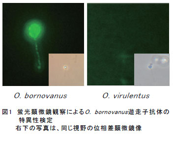 Olpidium bornovanus 遊走子の特異抗体を用いた間接ELISA法は、1x103個/ml以上の本菌遊走子液を陽性と判定できる。本間接ELISA法を活用することにより、O. bornovanus に対して拮抗性を示す有用微生物の候補を簡易に選抜できる。 | ||||||||