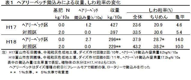 へアリーベッチ鋤込みによるダイズちりめんじわ粒発生軽減効果 | ||||||||