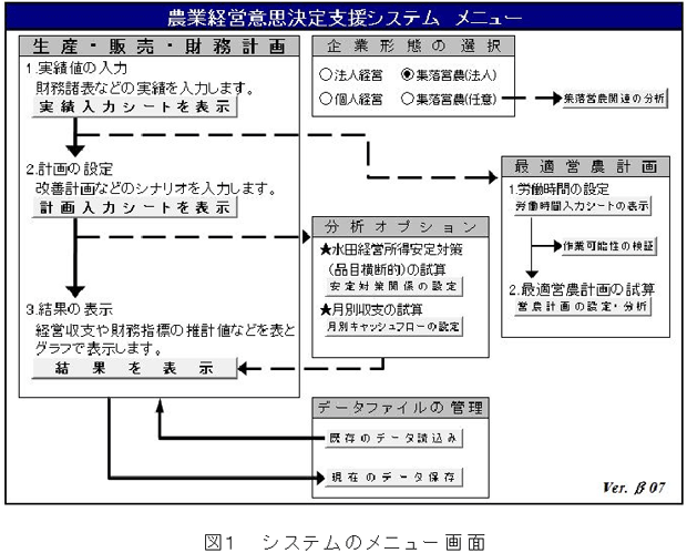 本システムは、耕種部門を基幹とする法人経営、青色申告決算書を作成している農業者、協業化している集落営農組織において利用できる。 |