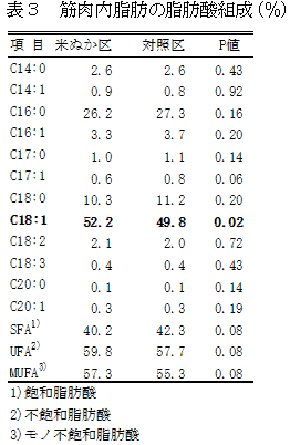 米ぬか給与による牛蓄積脂肪の脂肪酸組成変化 | ||||||||