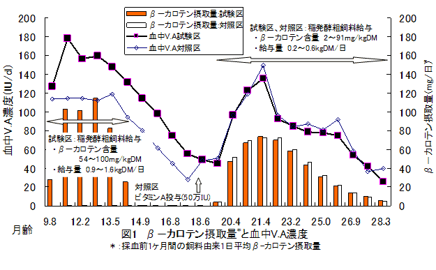 稲発酵粗飼料を給与した肥育牛の血中ビタミンA濃度の推移 |