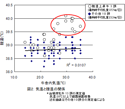 乳牛の直腸温測定に基づく暑熱による繁殖性低下が疑われる雌牛の発見 |