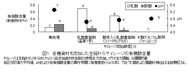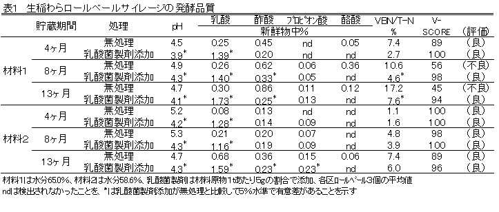 生稲わらロールベールサイレージは、無処理でも貯蔵4ヶ月の発酵品質が良好であり、乳酸菌製剤添加によりさらに長期間安定貯蔵できる。また、このサイレージの肥育後期黒毛和種去勢牛による採食性は高く、肥育成績は乾燥稲わら給与と同等である。 | ||||||||