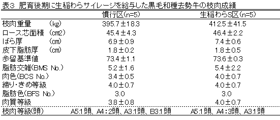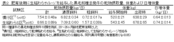 [キーワード]生稲わらサイレージ、発酵品質、黒毛和種去勢牛、肥育成績 |