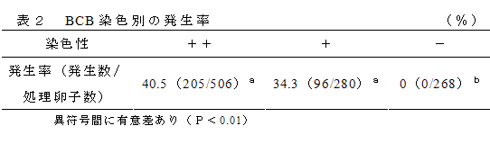 ウシ未成熟卵子のBCB染色は高品質卵子のスクリーニングに有効である | ||||||