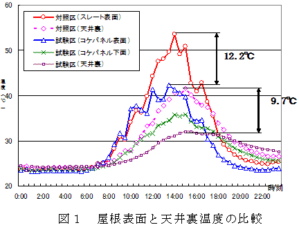コケパネルを豚舎屋根に設置すると、屋根表面、天井裏温度、豚舎内温度が低下する。供試豚の体表温度も低くなり、暑熱対策として有効である。 | ||||||