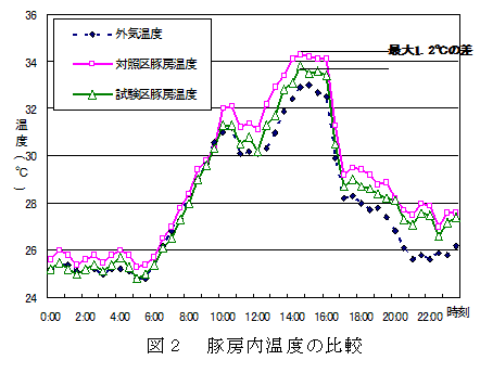 コケパネルを豚舎屋根に設置すると暑熱対策として有効である。 | ||||||