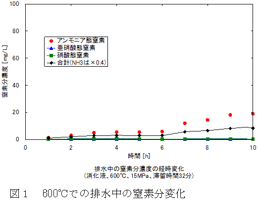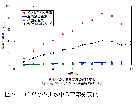 メタン発酵消化液の超臨界水中燃焼法による分解処理を検討した。反応温度の検討では560℃では安定的な窒素分分解ができないことから、600℃以上の燃焼温度が完全分解には最低温度となる。 | ||||||