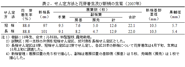 ブドウ新品種「シャインマスカット」は、短梢せん定に適している | ||||||||||