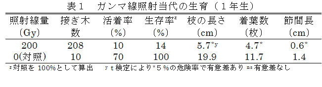 [キーワード]ウンシュウミカン、放射線育種、ガンマ線、わい性 |