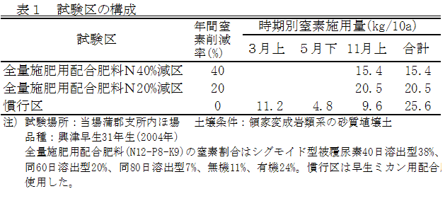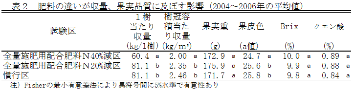 露地早生ウンシュウミカンの全量施肥用配合肥料による省力施肥法 | ||||||||