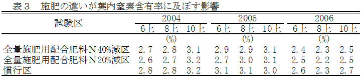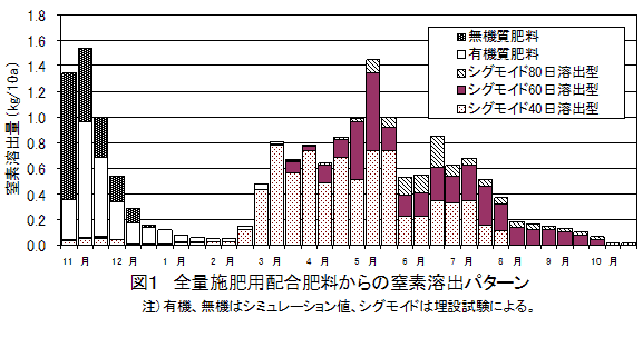 露地早生ウンシュウミカンの施肥作業は年3回あるが、施設栽培との複合経営体系では、その収穫や加温準備から労力競合が起こり、適期施肥が行われていない現状である。そこで年1回全量施肥が可能で、さらに高品質安定生産並びに窒素施用量の削減できる、全量施肥用配合肥料を新規に開発し、施肥作業の省力化を図る。 | ||||||||
