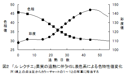 [キーワード]画像、ル レクチエ、追熟、果皮色、カラーチャート |