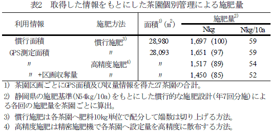 DGPSによる茶園面積測定と高精度施肥による施肥量の適正化 | ||||||||