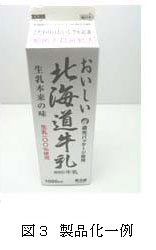 遮光カートンは乳業メーカー数社に採用され、製品化されるに至った(図3)。現在は飲用牛乳類で製品化されており、この遮光カートンを使用することで、保存による風味劣化や鮮度低下の軽減が期待できる。今後も高付加価値を売りにした、高級感のある牛乳としての製品化を目指す。 |