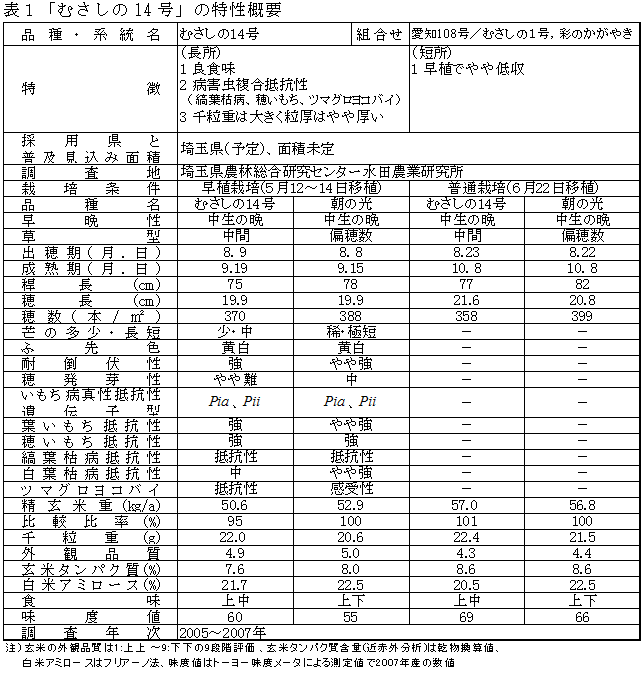 病害虫複合抵抗性を有し、良質・良食味の水稲新品種「むさしの14号」 |