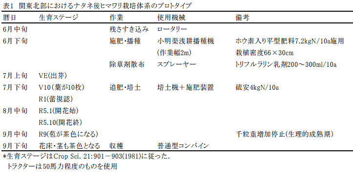 関東北部の転換畑におけるナタネ後ヒマワリの機械化栽培法 |