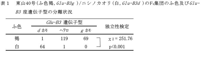 [キーワード]コムギ、連鎖分析、低分子量グルテニン・サブユニット、ふ色 |