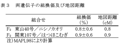 コムギのふ色遺伝子Rg1 と低分子量グルテニン・サブユニットGlu-B3 座との連鎖分析 | ||||||||