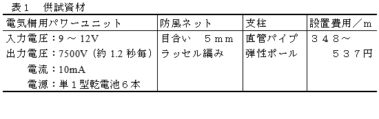 ハクビシンとアライグマの「登る」習性を利用した電気柵は、直管パイプと防風ネットを組み合わせて作る(図1、表1)。 |