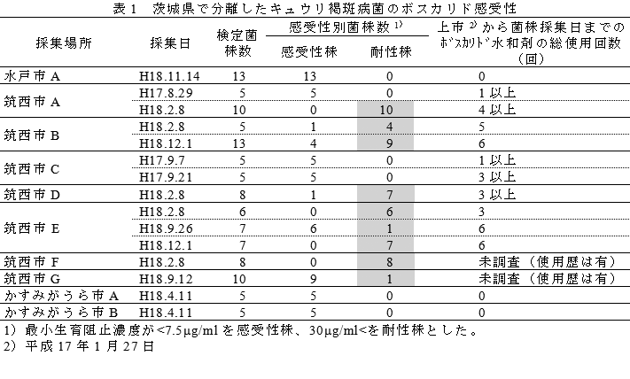 茨城県におけるボスカリド耐性キュウリ褐斑病菌の発生 | ||||||||