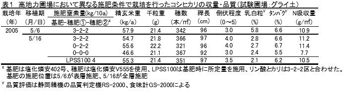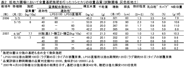 地力を考慮した遅植コシヒカリの全量基肥施肥法 |