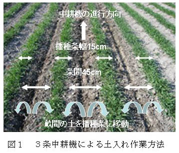 大豆の中耕・培土機を汎用利用した麦類の土入れ作業技術