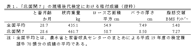 「北国関7」は高い育種価が推定されたことから、その利用により増体と肉質の良い子牛の生産が期待できるが、血統的に、近親交配を防ぐ配慮が必要とされる。 |