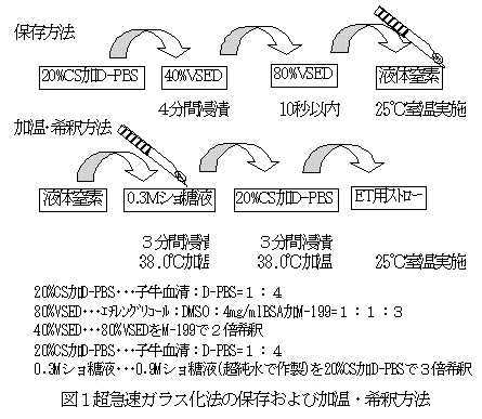 ガラス化液は、エチレングリコール(EG)とDMSOを各20%含有する溶液(80%VSED)を用いる(図1)。 |
