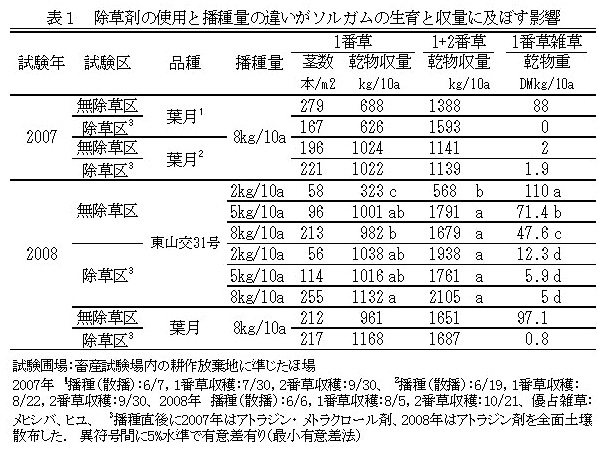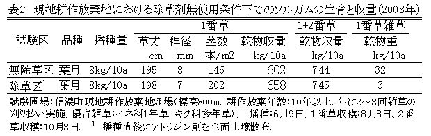 1年生雑草が優占する耕作放棄地を対象としたソルガムの除草剤を使わない栽培法 | ||||||||