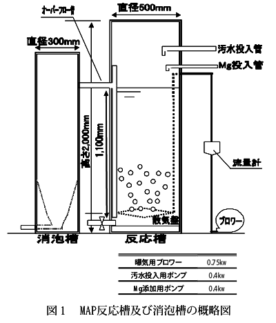 塩ビ管で作成した簡易型MAP反応槽における処理能力値を示したことから、汚水の性状及び汚水量が把握できれば、MAP回収量が試算可能である。 |