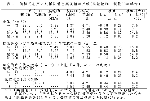 家畜ふん堆肥風乾物のECから現物堆肥のECを推定する換算式の提案