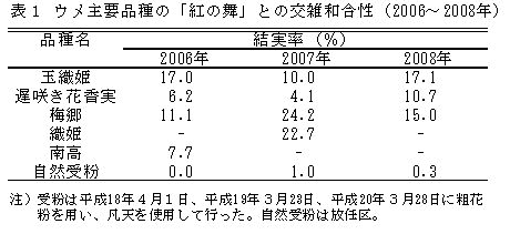 ウメ新品種「紅の舞」における結実確保のための人工受粉法と収穫基準 | ||||||||||