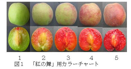 [キーワード]ウメ、紅の舞、人工受粉、収穫適期、カラーチャート |