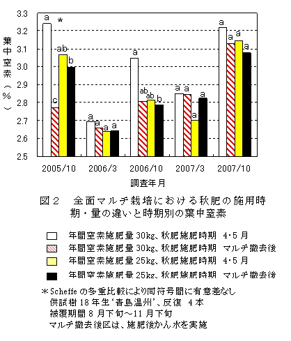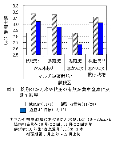 [キーワード]「青島温州」、マルチ栽培、秋肥、葉中窒素 |