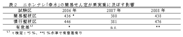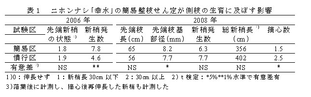 [キーワード]ニホンナシ、「幸水」、簡易な整枝せん定 |