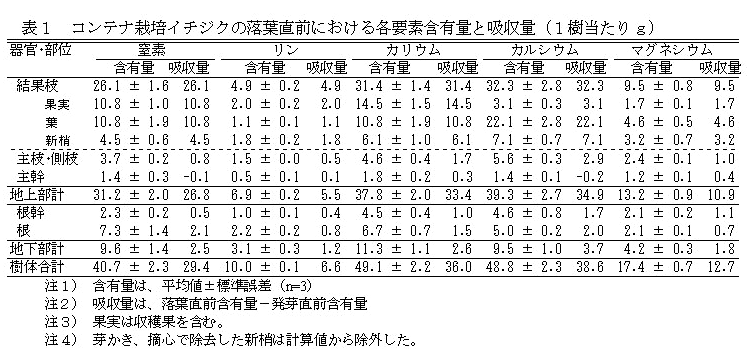 コンテナ栽培イチジクの養分吸収特性