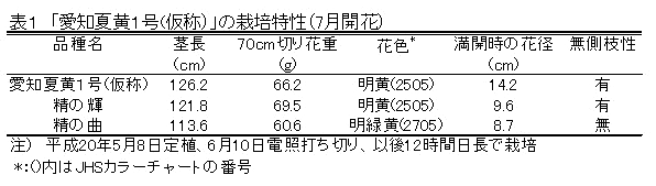 夏秋系一輪ギク新品種「愛知夏黄1号(仮称)」の育成