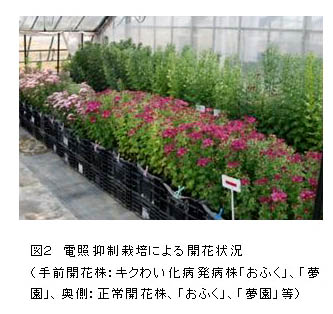 [キーワード]コギク、キクわい化病、キクわい化ウイロイド、電照 |