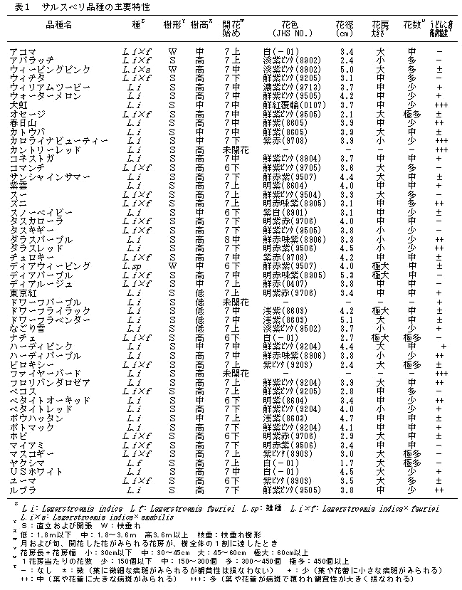 [キーワード]サルスベリ、品種特性、花色、うどんこ病 |