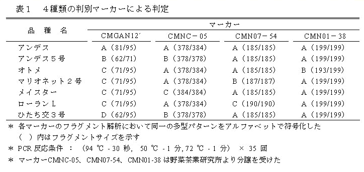 茨城県育成のメロン新品種「ひたち交3号」および緑肉ネット系メロン6品種を判別するために開発した4種類のDNAマーカーのうち、「ひたち交3号」は1種類のマーカーによって判別できる。 | ||||||