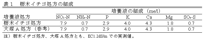 クリプトモスを利用した閉鎖型養液栽培に適する「栃木イチゴ処方」 | ||||||||
