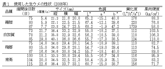研究課題名:梅加工技術高度化試験 | ||||||||||