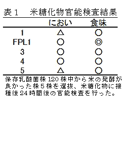 さらに米や米糖化物での生育が良好で、発酵後のにおい・味が優れている(表1)。