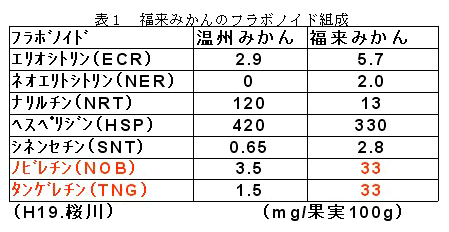 福来みかんの機能性成分 | ||||